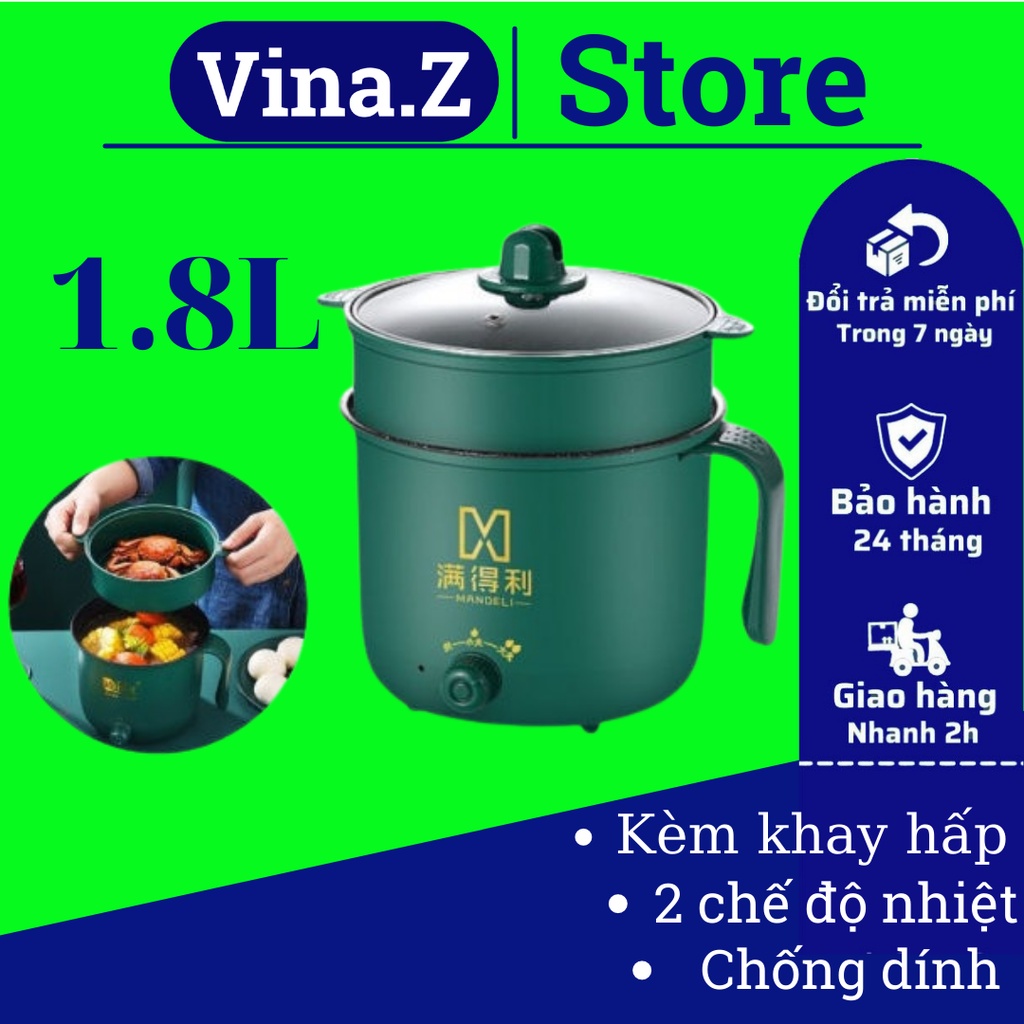 Nồi Lẩu Mini Cầm Tay, Nồi Nấu Cơm, Nấu Mì Đa Năng 1,8L Kèm Giá Hấp Tiện Lợi