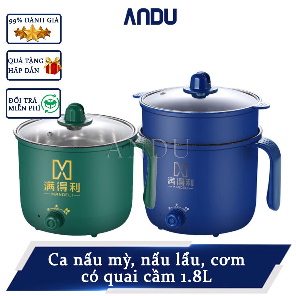 Nồi Lẩu Mini Cầm Tay, Nồi Nấu Cơm, Nấu Mì Đa Năng 1,8L - 2 Nấc Nhiệt Kèm Giá Hấp Tiện Lợi Loại Mới