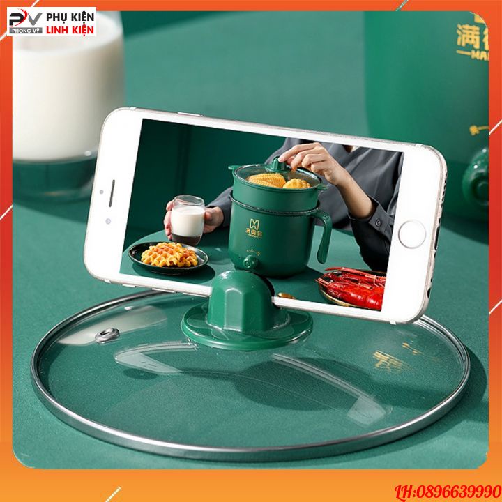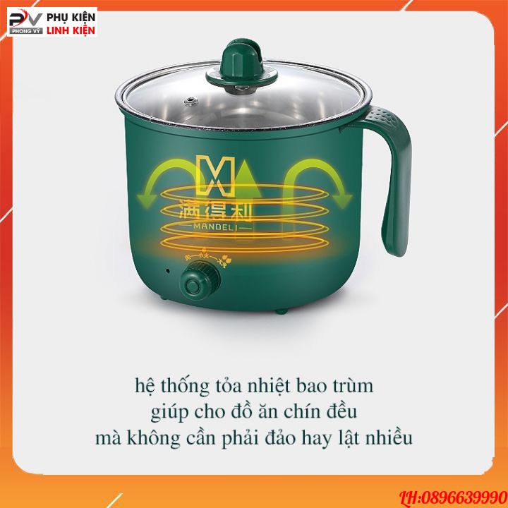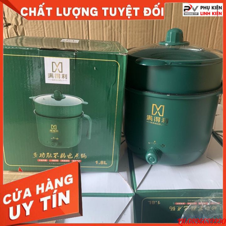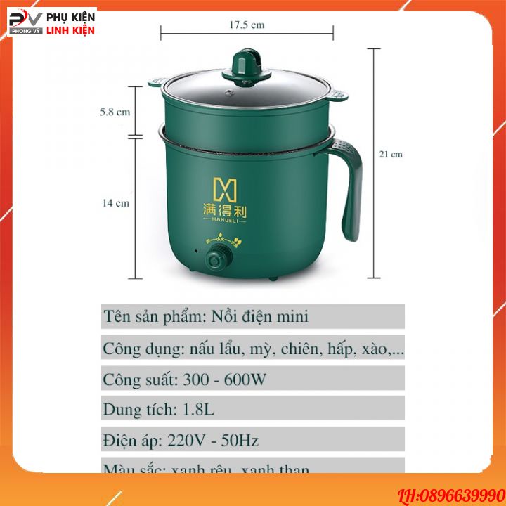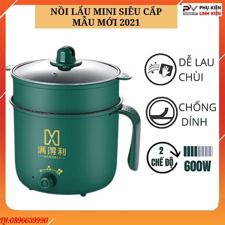 Nồi lẩu mini đa năng 2 tầng ca nấu mì điện núm xoay 2 nấc nhiệt kèm giá hấp 1,8L SHANBAN
