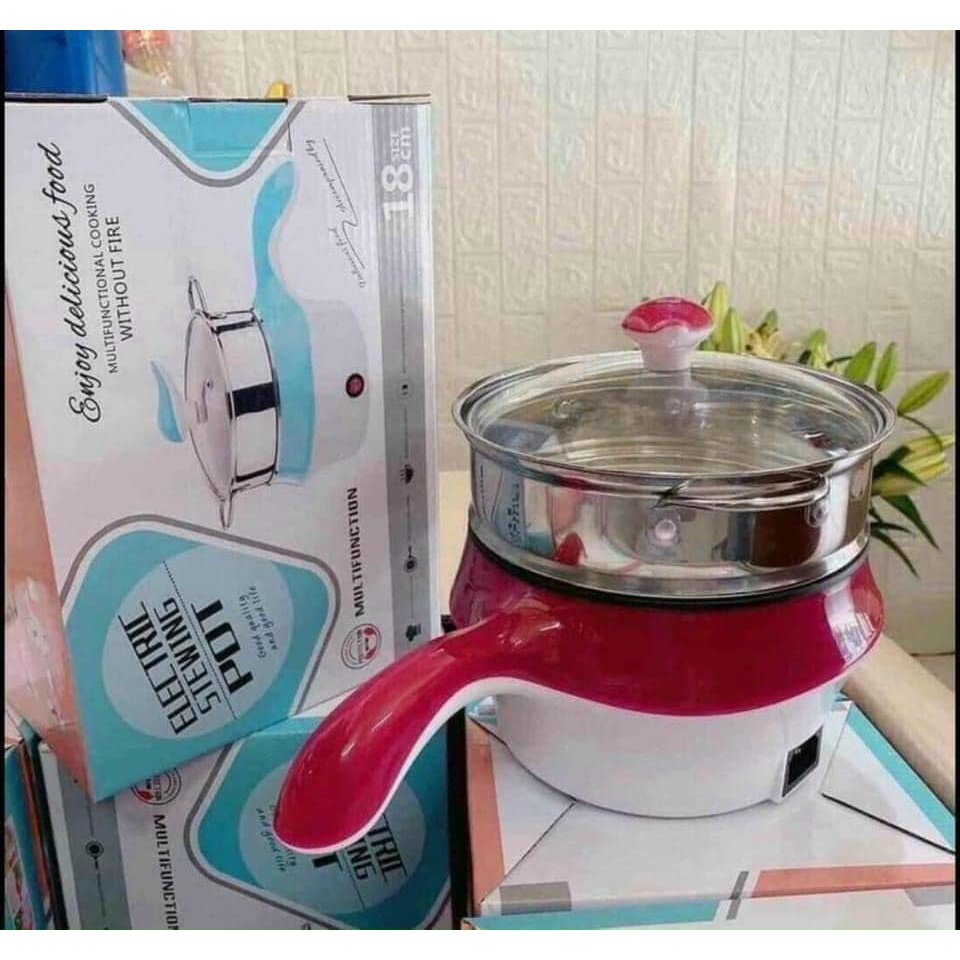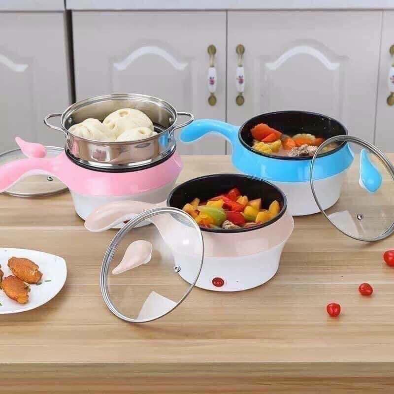 Nồi lẩu mini đa năng 2 tầng chống dính - Nồi lẩu điện mini siêu tốc size 18cm có tay cầm tiện lợi