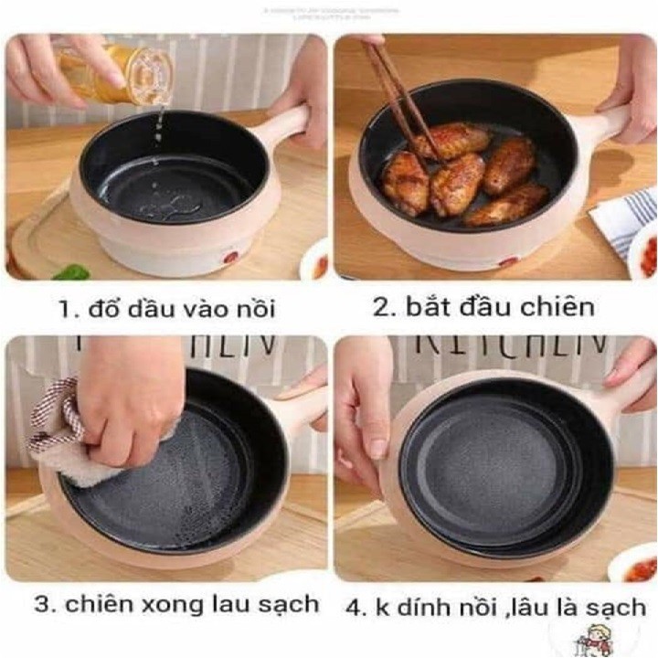 Giới thiệu Nồi Lẩu Mini Đa Năng 2 Tầng Chống Dính, Nồi lẩu điện mini cầm tay size 18cm - Tặng khăn lau bếp