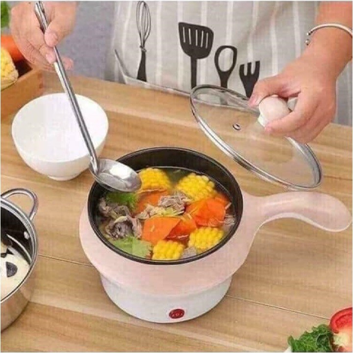 Nồi Lẩu Mini Đa Năng 2 Tầng Chống Dính, Nồi lẩu điện mini cầm tay size 18cm - Tặng khăn lau bếp