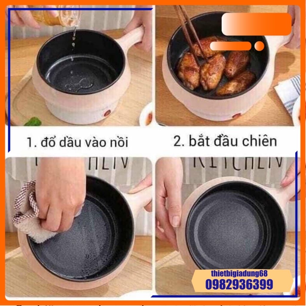 Nồi Lẩu Mini Đa Năng Chống Dính Kèm Vỉ Hấp 2 Tầng FreeShip Ca Nấu Mì Mini Đa Năng Chiên Ngập Dầu Xào Rán Hấp