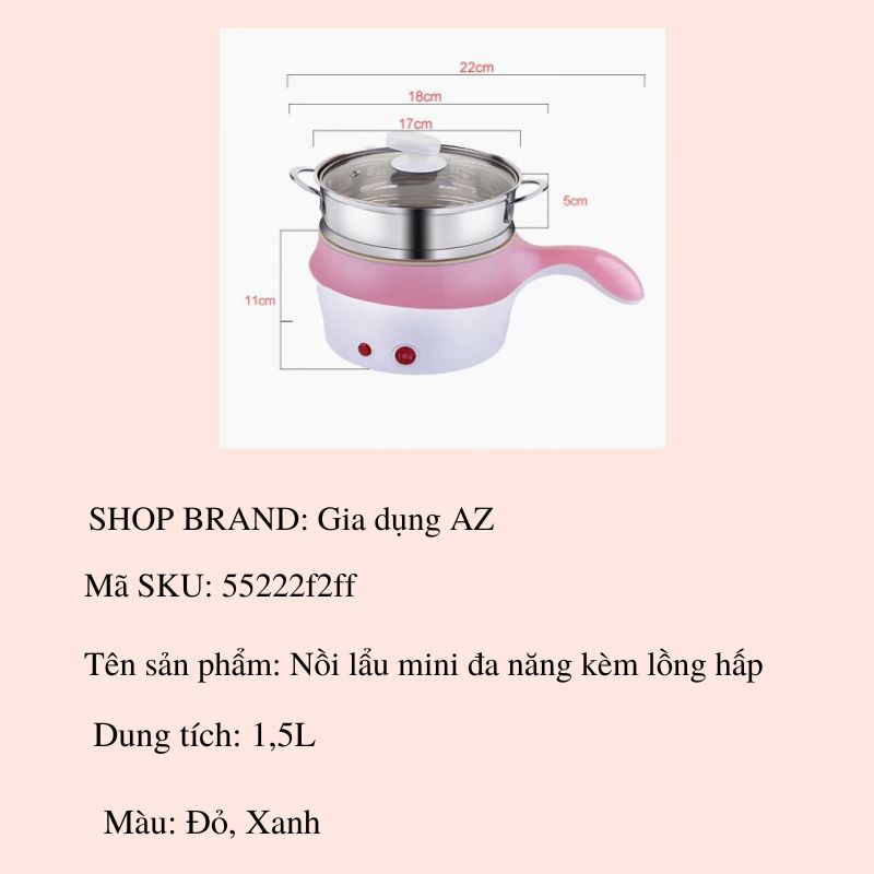 - Tên sản phẩm: Nồi lẩu mini đa năng kèm lồng hấp inox tiện lợi lòng chống dính cao cấp