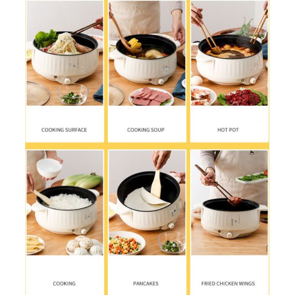 - Nồi lẩu điện mini giúp bạn nhanh chóng có được những món ăn ưa thích như: mỳ phở ăn liền, lẩu, các món kho và luộc, nấu cháo, hâm nóng thức ăn, đun nước, chiên xào...
