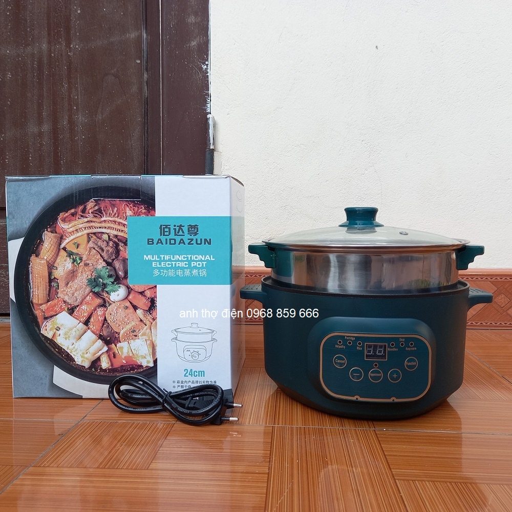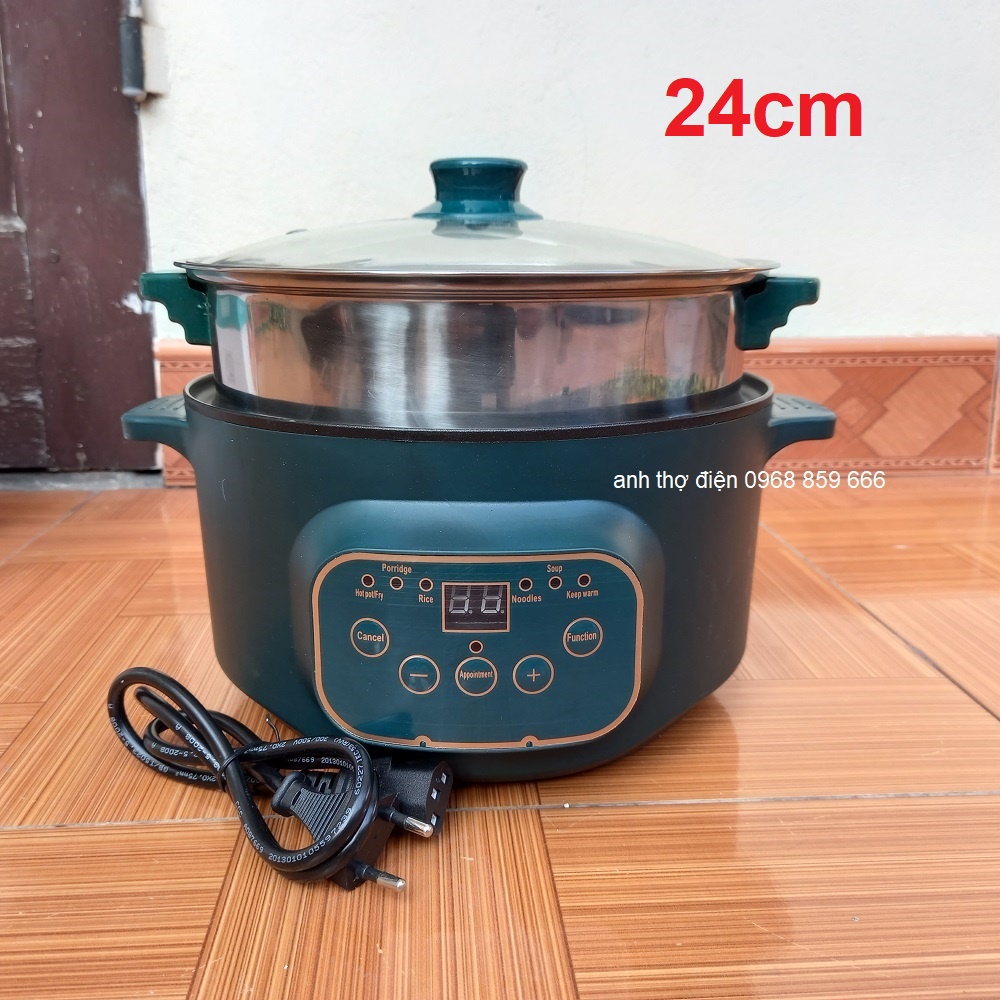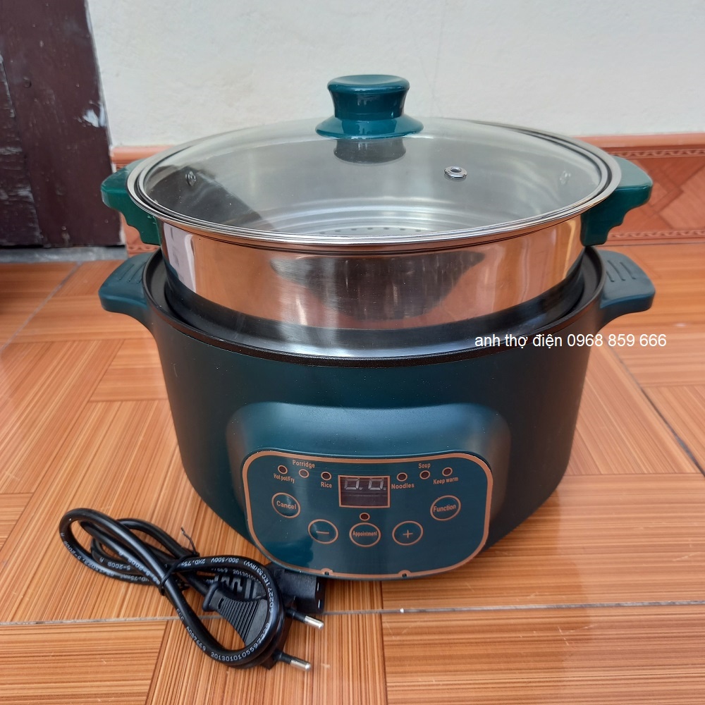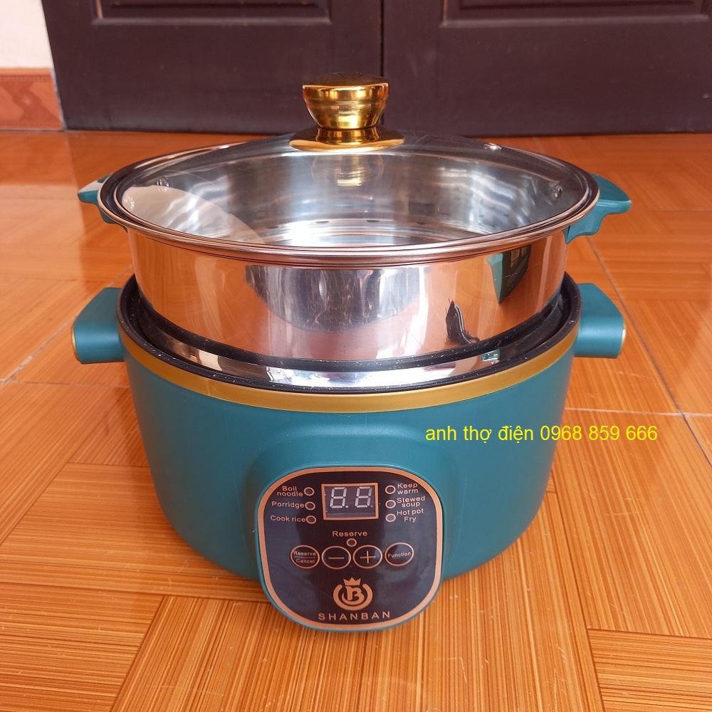 Nồi Lẩu Mini Đa Năng Xào, Hấp, Chiên, Nấu Cơm, Nấu Cháo, 6 Chế Độ nấu 2 tầng kèm hấp
