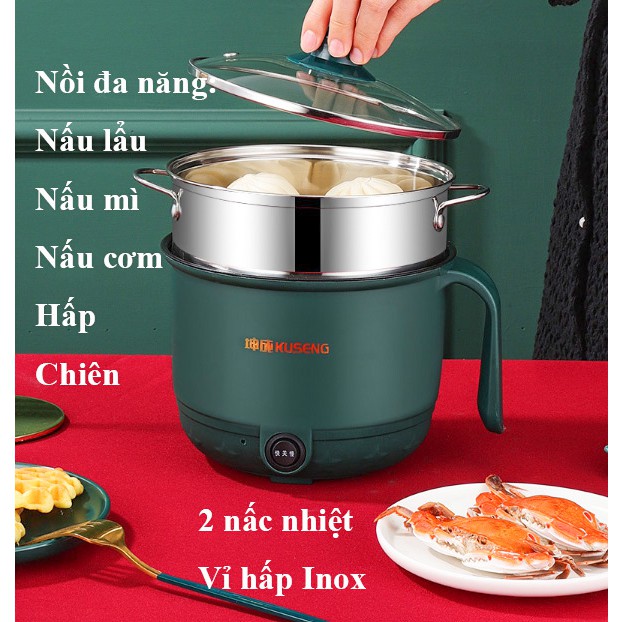 Nồi Lẩu Mini, hấp 2 tầng, ca nấu mì, đa năng, Nấu Cơm, chiên, hấp_Gọn nhẹ, 2 nấc nhiệt, tiện dụng (vỉ Inox)