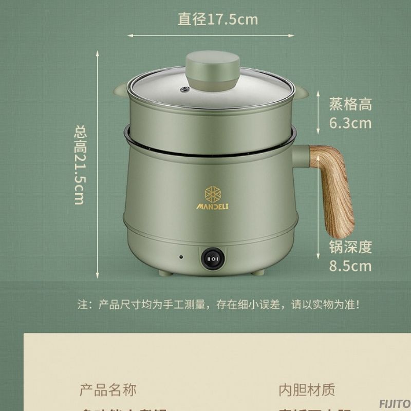 Nồi lẩu mini nấu cầm tay đa năng có tay cầm gỗ 1.8L có lớp cách điện siêu bền MIIBOOSHI D3.012