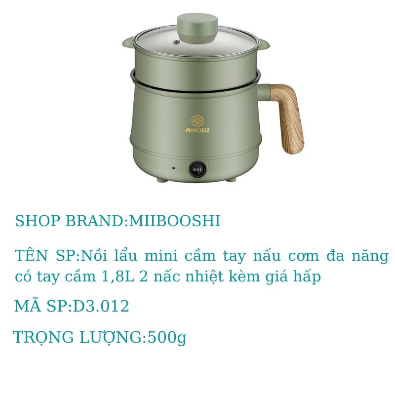 Nồi lẩu mini nấu cầm tay đa năng có tay cầm gỗ 1.8L có lớp cách điện siêu bền MIIBOOSHINồi lẩu điện mini đa năng có tay cầm được nhập khẩu với chất lượng cao cấp an toàn tuyệt đối cho sức khỏe người sử dụng. Với công nghệ đa năng cùng những tính năng thông minh, tiện ích bắt kịp xu thế thời buổi hiện đại, nồi điện đa dụng cao cấp chắc chắn có được sự hài lòng từ những khách hàng khó tính.