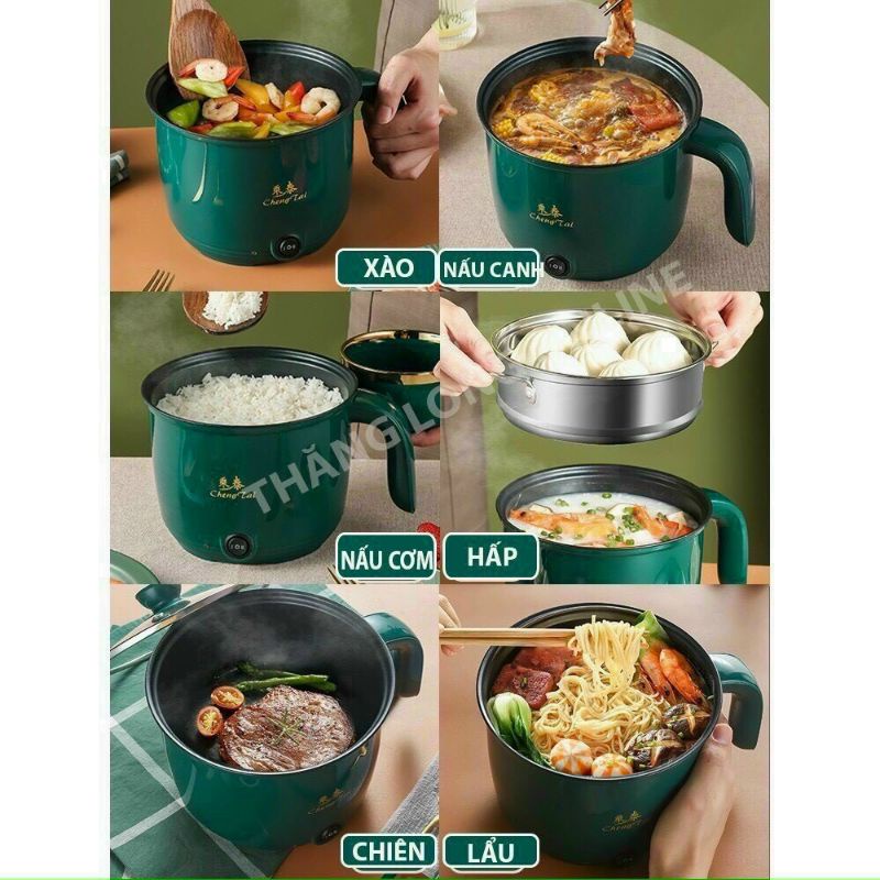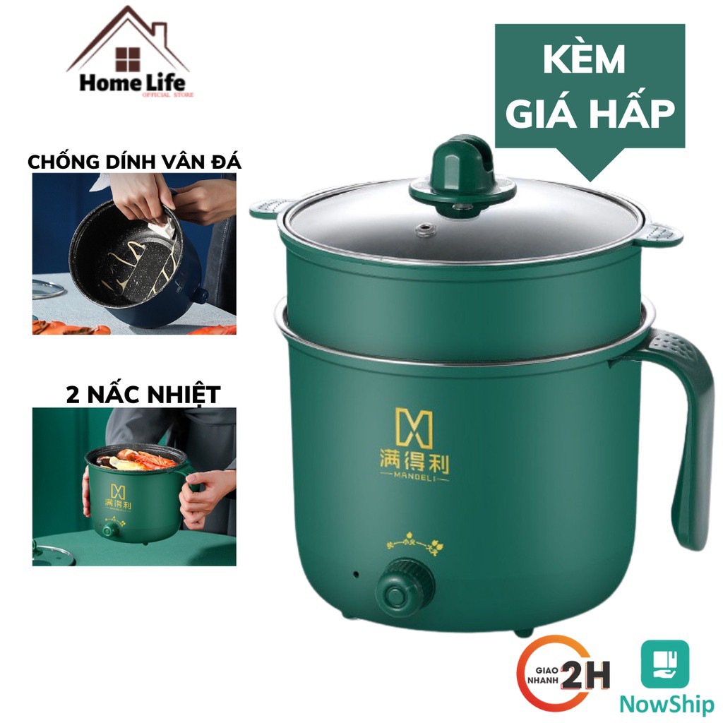 Nồi Lẩu Mini, Nấu Mì, Nấu Cơm Đa Năng Có Tay Cầm 1,8L - Nồi Điện 2 Nấc Nhiệt Mẫu Mới 2021 Kèm Giá Hấp