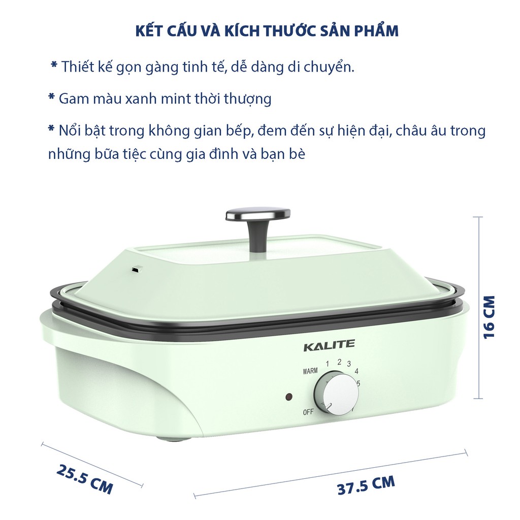 - Là một trong những nồi lẩu nướng được đánh giá cao về thiết kế, Kalite KL-663 mang phong cách Châu Âu sang trọng với màu xanh ngọc thanh lịch, tươi sáng.