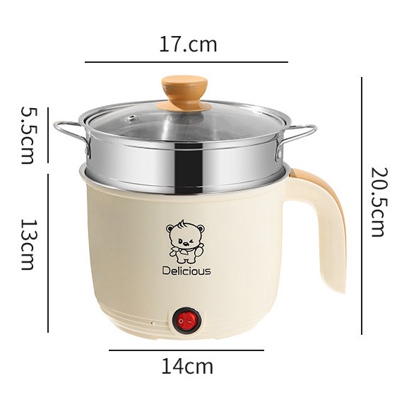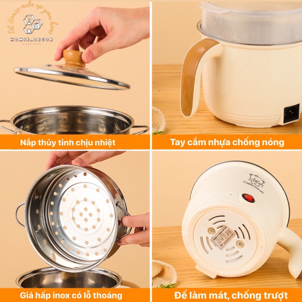 Nồi Lẩu Mini Tiện lợi Nấu Mì, Ăn Lẩu, Nấu cơm Đa Năng Kèm Giá Hấp INOX