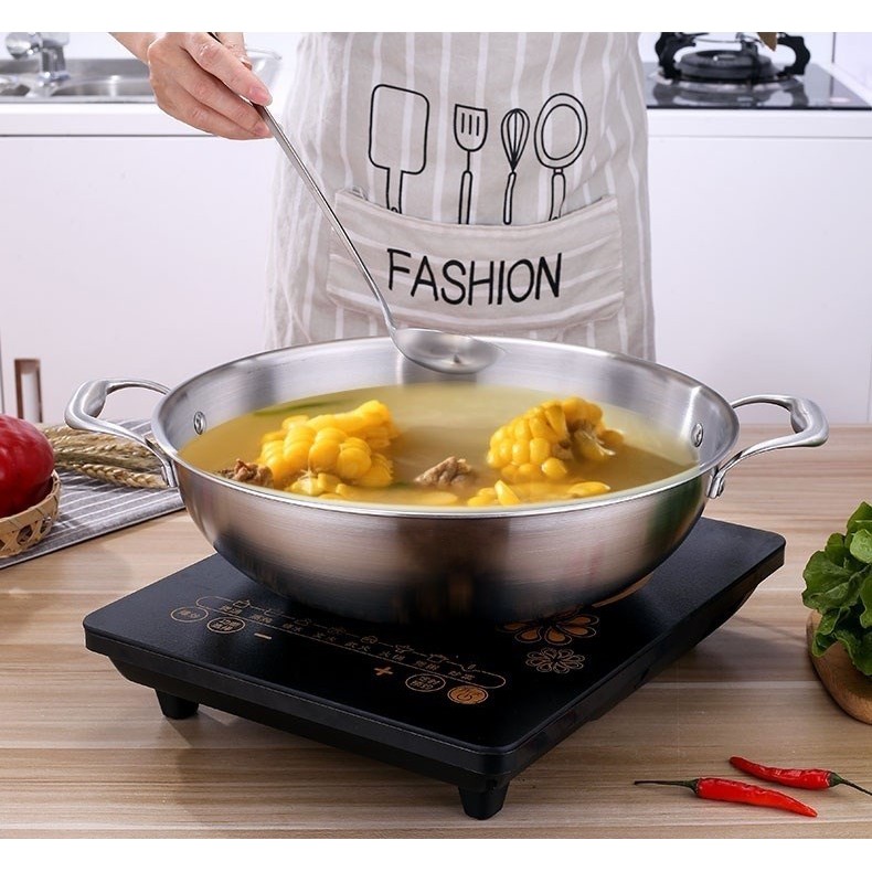 Nồi lẩu Inox 28cm có hình dáng bo tròn ở đáy kiểu cách nhã nhặn sang trọng giúp cho món ăn được ngon hơn
