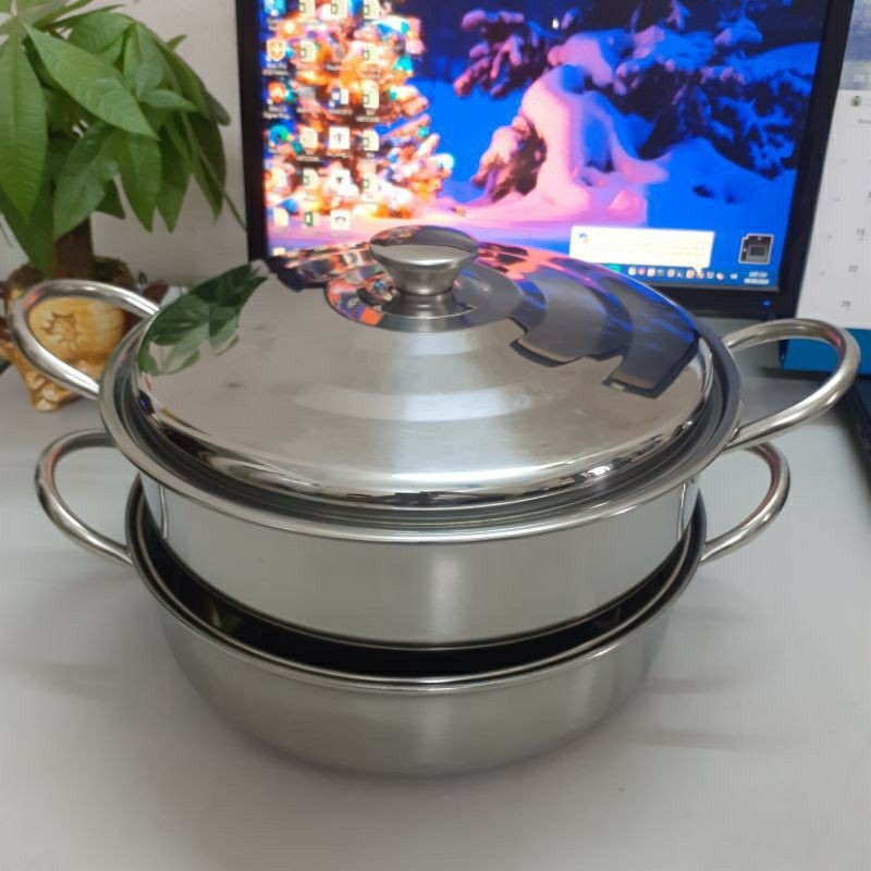 Nồi lẩu inox 3 đáy nắp kính: 26, 28cm