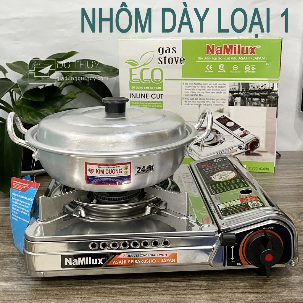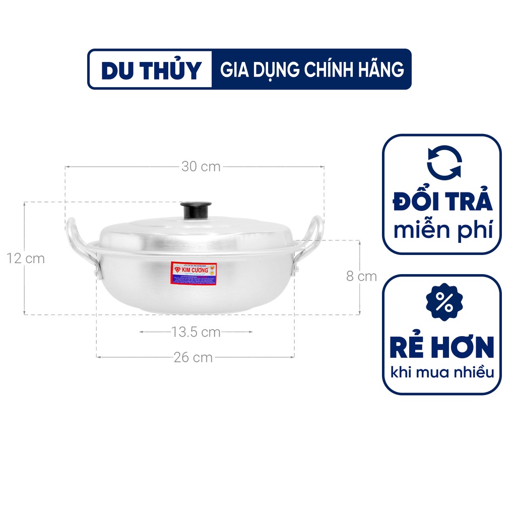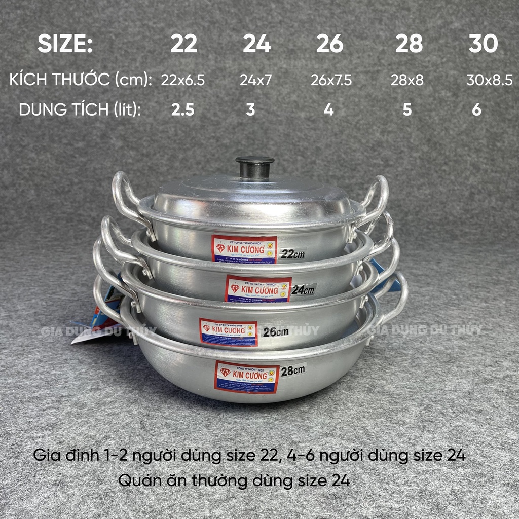 Nồi lẩu nhôm cao cấp, dày dặn tiêu chuẩn Nhật Bản JIS kích thước 22 - 24 - 26 - 28 - 30 cm thương hiệu nhôm Kim Cương