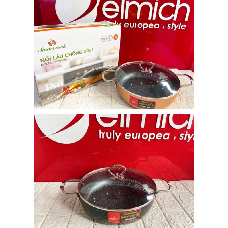 Nhà cửa & Đời sống > Dụng cụ nhà bếp > Nồi || Nồi lẩu nhôm chống dính vân đá đáy từ cao cấp 26cm Smartcook 5552KMBCòn hàng