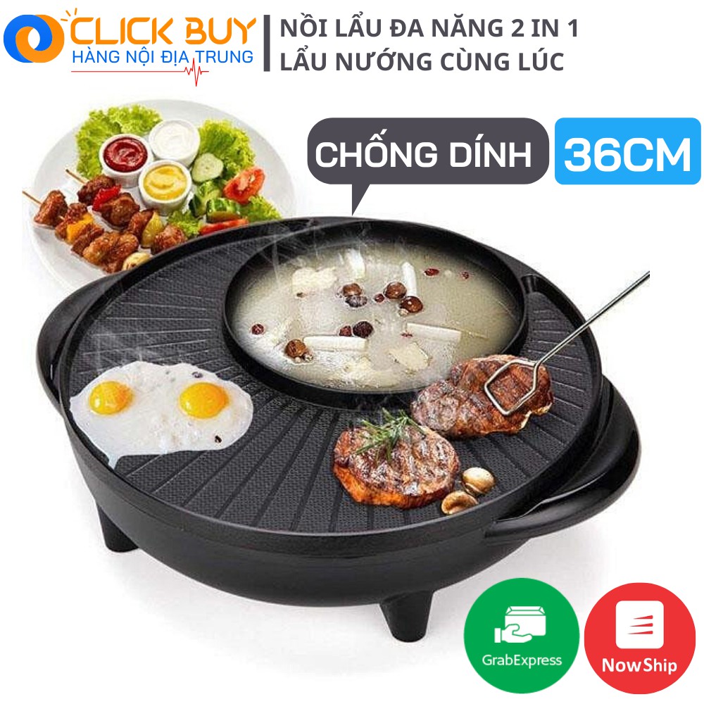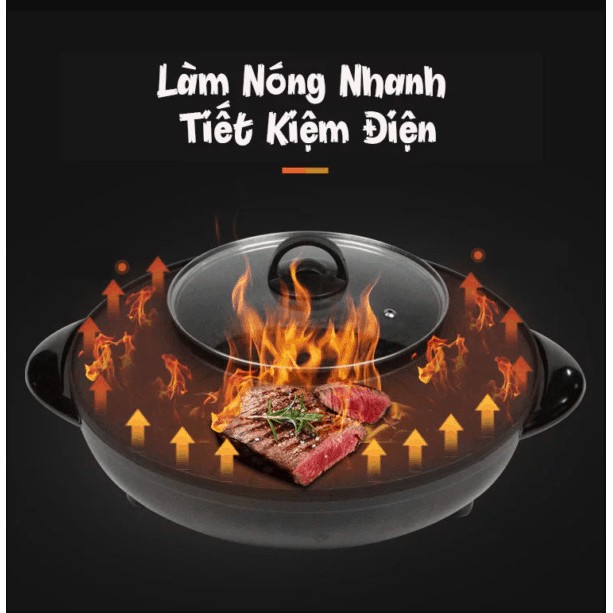 Nồi Lẩu Nướng 2 in 1 Chống Dính LOẠI TO 34CM Bếp Điện Vừa Ăn Lẩu Vừa Ăn Nướng Cùng Lúc