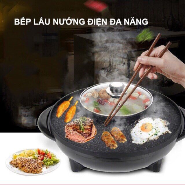 - Bếp Lẩu Nướng Đa Năng này có nhiều chức năng như: nướng, xào, lẩu, rán mặt bếp được phủ chống dính đá hoa cương truyền nhiệt nhanh, giữ nhiệt tốt, công suất 1.600W thức ăn chín nhanh hơn, ngon hơn và không mất chất dinh dưỡng từ thực phẩm, sức khỏe tốt hơn.