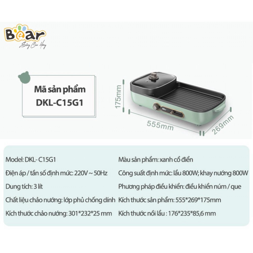 - Tên sản phẩm: Nồi lẩu nướng 2 ngăn Bear DKL-C15G1