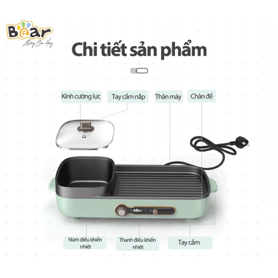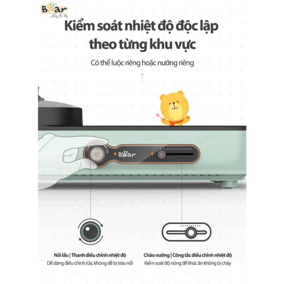 [Mã 44ELSALE2 giảm 7% đơn 300K] Nồi lẩu nướng 2 ngăn Bear DKL-C15G1 - Phiên bản Quốc tế, Bảo hành 18 tháng