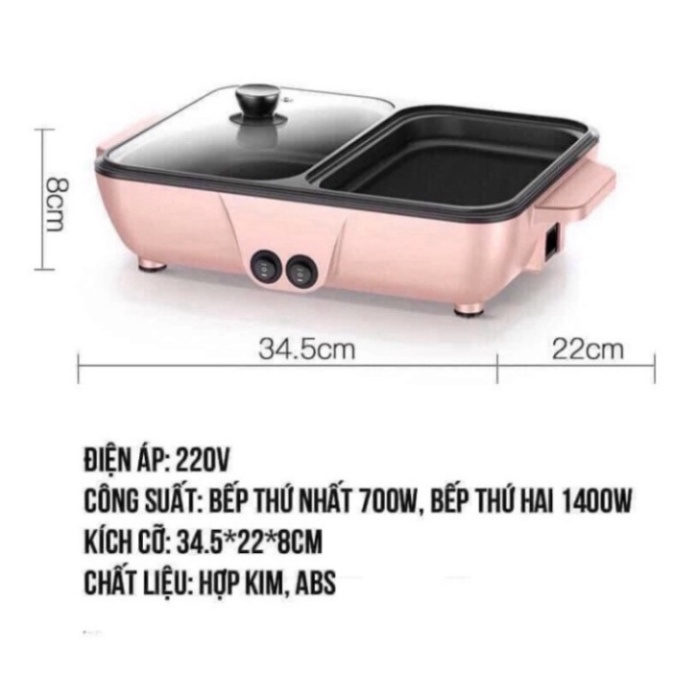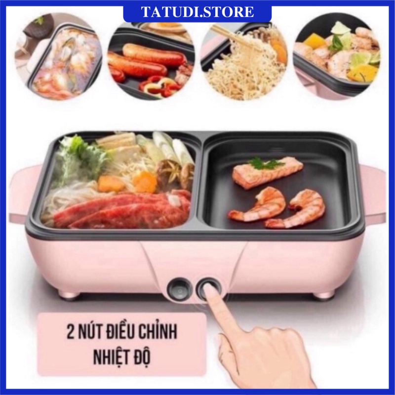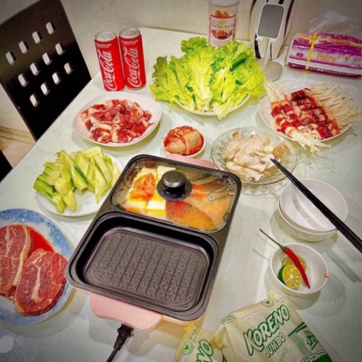 Nồi lẩu nướng 2 ngăn công suất 1200w kiểu dáng hàn quốc mini đa năng 2 trong 1 chống dính, chống giật kháng khuẩn