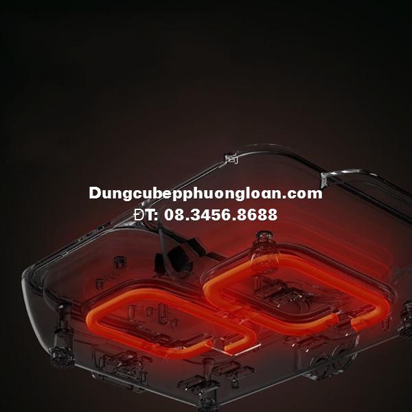 Bếp gồm 2 công tác tướng ứng với 2 ngăn bếp lẩu và bếp nướng rất tiện lợi. Bạn có thể dùng đồng thời cả 2 ngăn hoặc một ngăn được.
