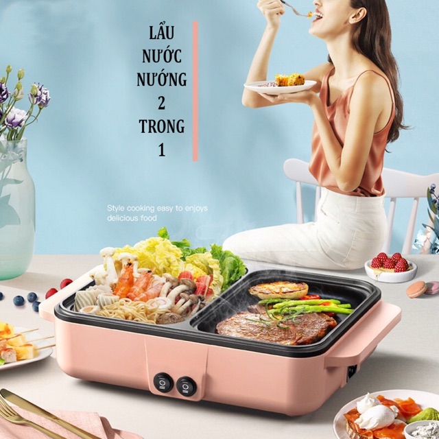 Nồi Lẩu Nướng 2 Ngăn Hàn Quốc 2in1 Đa Năng Tiện Lợi cho Gia Đình