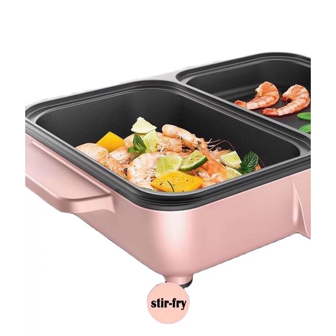 - Thiết kế tiện dụng có thể nhúng lẩu và nướng cùng lúc, ngoài ra còn xào rán làm được tất tần tật các món luôn.
