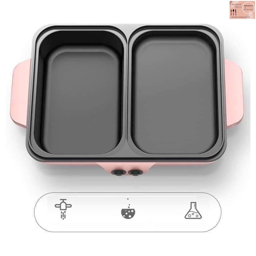 Nồi lẩu nướng 2 ngăn mini chống dính, Bếp lẩu nướng đa năng 2 in 1 cao cấp vừa lẩu vừa nướng tiện lợi cho mọi gia đình