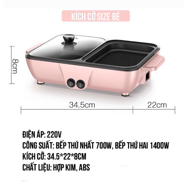 Nồi lẩu Nướng 2 Ngăn - Nướng - Nước 2 in 1 Chống Dính