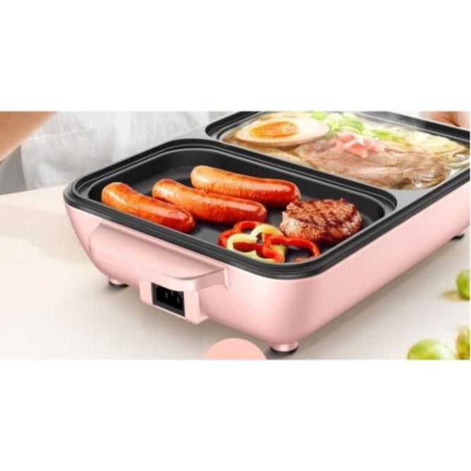 Bếp Điện Mini 2 Ngăn, Đế Chống Dính | Công Dụng 5 Trong 1 Có Thể Vừa Ăn Nướng, Vừa Ăn LẩuHàng có sẵn