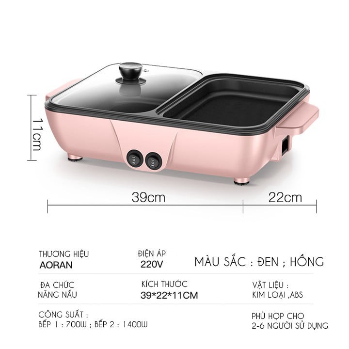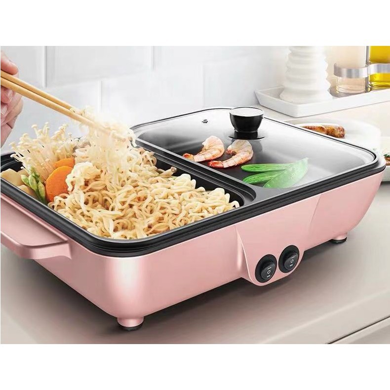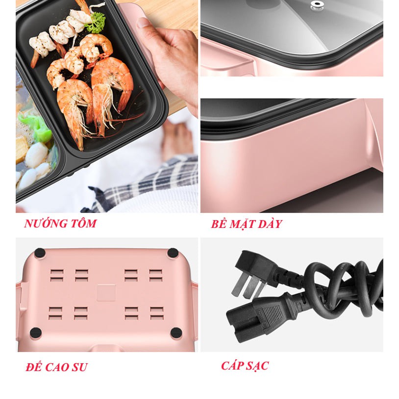 Nồi lẩu nướng 2 trong 1 tiện lợi - nồi lẩu nước màu hồng siêu cute
