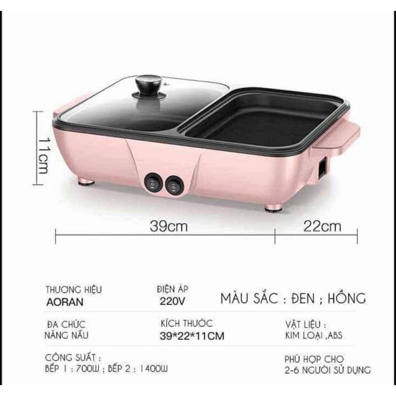 Nồi lẩu nướng 2in1 Hàn Quốc 2 nút điều chỉnh nhiệt độ - Nồi lẩu điện nướng 2 ngăn Hàn Quốc mini - Bếp nướng kiêm lẩu.