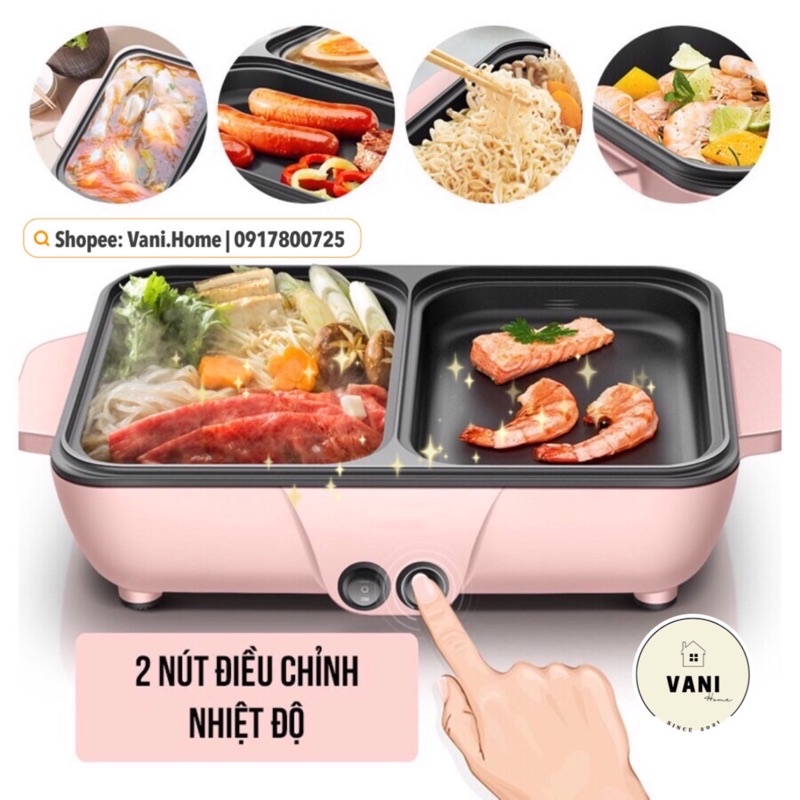 Thiết Bị Điện Gia Dụng > Đồ gia dụng nhà bếp > Nồi nấu chậm & Dụng cụ nấu chân không || Nồi lẩu nướng 2in1 Hàn Quốc 2 nút điều chỉnh nhiệt độ - Nồi lẩu điện nướng 2 ngăn Hàn Quốc mini - Bếp nướng kiêm lẩu.Còn hàng
