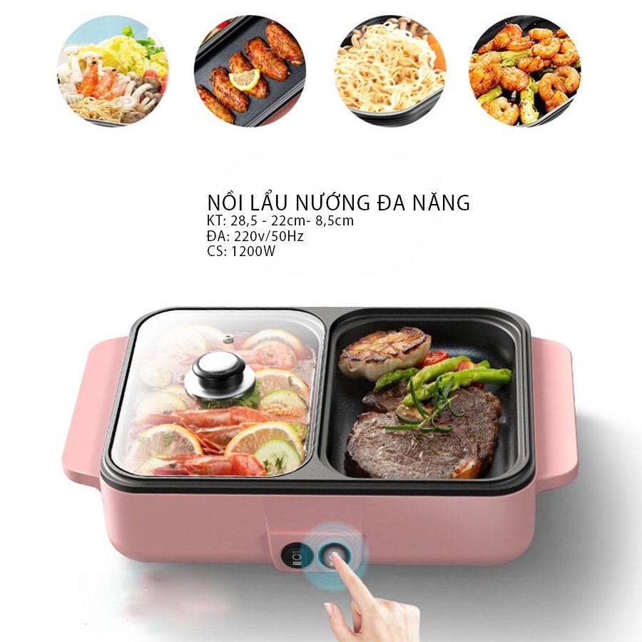 Nồi lẩu nướng 2in1 Hàn Quốc 2 nút điều chỉnh nhiệt độ - Nồi lẩu điện nướng 2 ngăn Hàn Quốc mini - Bếp nướng kiêm lẩu.