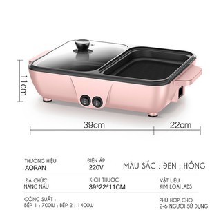 Nồi Lẩu Nướng 2in1 Mini Hàn Quốc, Bếp Lẩu Nướng 2 Ngăn Đa Năng Hàn Quốc Cao Cấp Bảo Hành 6 Tháng