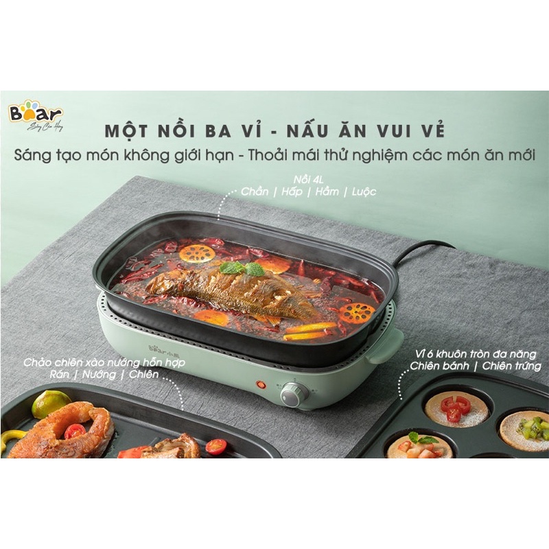 Nồi lẩu nướng 3 khay Bear DHG-C40D5 - Hàng quốc tế