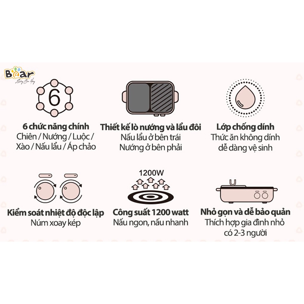 Giới thiệu Nồi lẩu nướng Bear SML DKL-C12D1 - Bảo Hành Chính Hãng