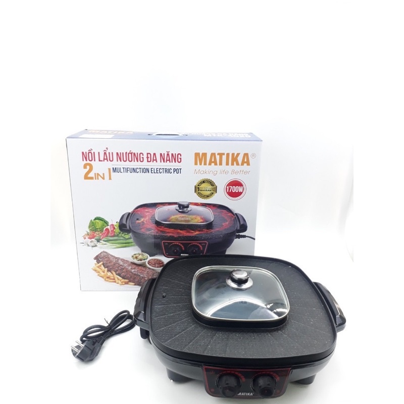 Nồi lẩu nướng,bếp lẩu nướng 2in1 Matika MTK-4020 tiện lợi,tiết kiệm thời gian ,bảo hành 12 tháng