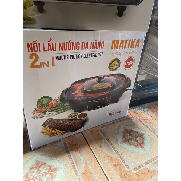 Giới thiệu Nồi lẩu nướng,bếp lẩu nướng 2in1 Matika MTK-4020 tiện lợi,tiết kiệm thời gian ,bảo hành 12 tháng