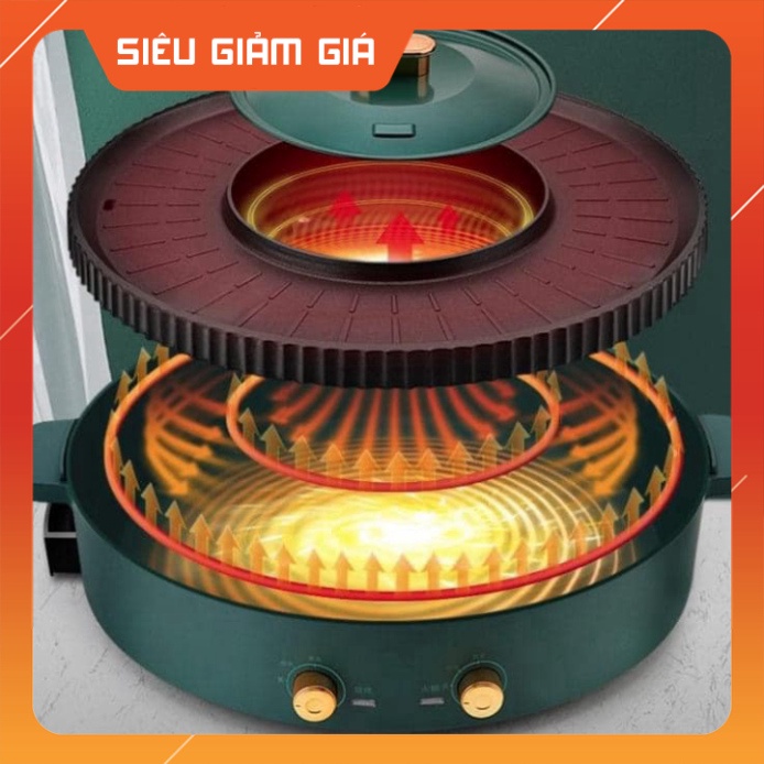 Nồi lẩu nướng, Bếp lẩu nướng điện đa năng 2 trong 1 ,tròn loại to tặng kèm bộ chuyển đổi 3 chấu thành 2 chấu