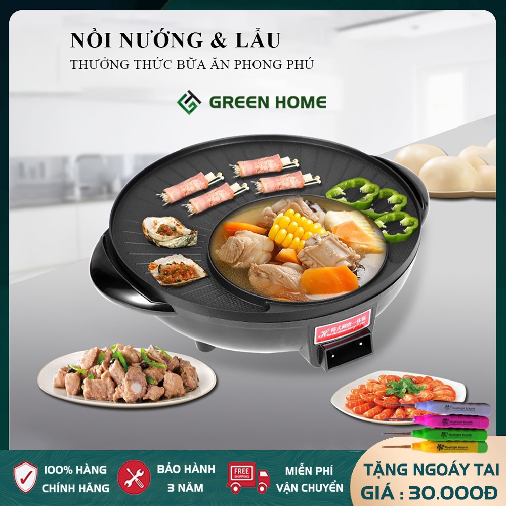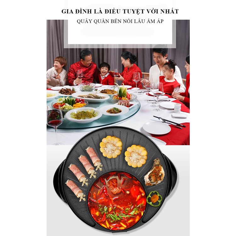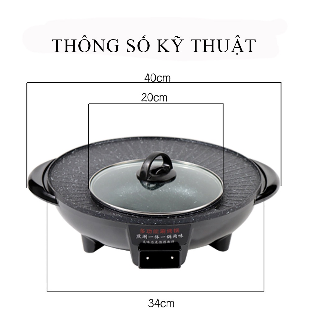 Nồi lẩu nướng chống dính đa năng, bếp nướng điện tiện lợi 2 in 1 Bảo hành 2 năm