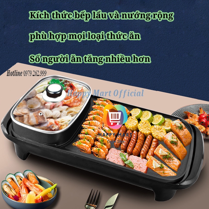 Nồi lẩu nướng đa năng 2 in 1 chính hãng, lẩu nướng Hongshuangxi đa năng tiện lợi