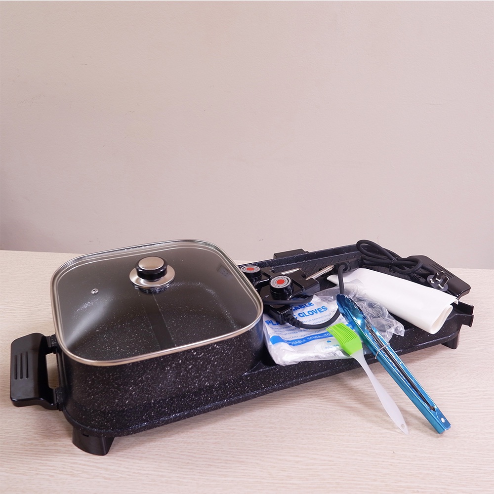 Nồi Lẩu Nướng Đa Năng 2 In 1 - Bếp Nướng Điện Cao Cấp Bề Mặt Phủ Men Chống Dính - Loại lớn nhất