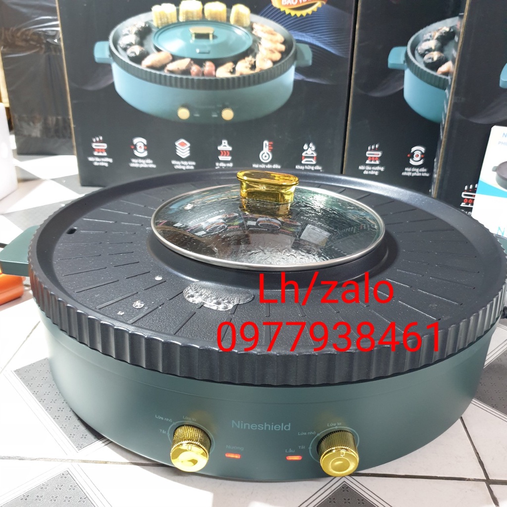 Thiết Bị Điện Gia Dụng > Đồ gia dụng nhà bếp > Nồi nấu đa năng || Nồi lẩu nướng đa năng 2 trong 1 NINESHIELD Chính hãng hàng loại 1, Bếp lẩu nướng không khói 2 ngăn đa năng tiện lợiCòn hàng