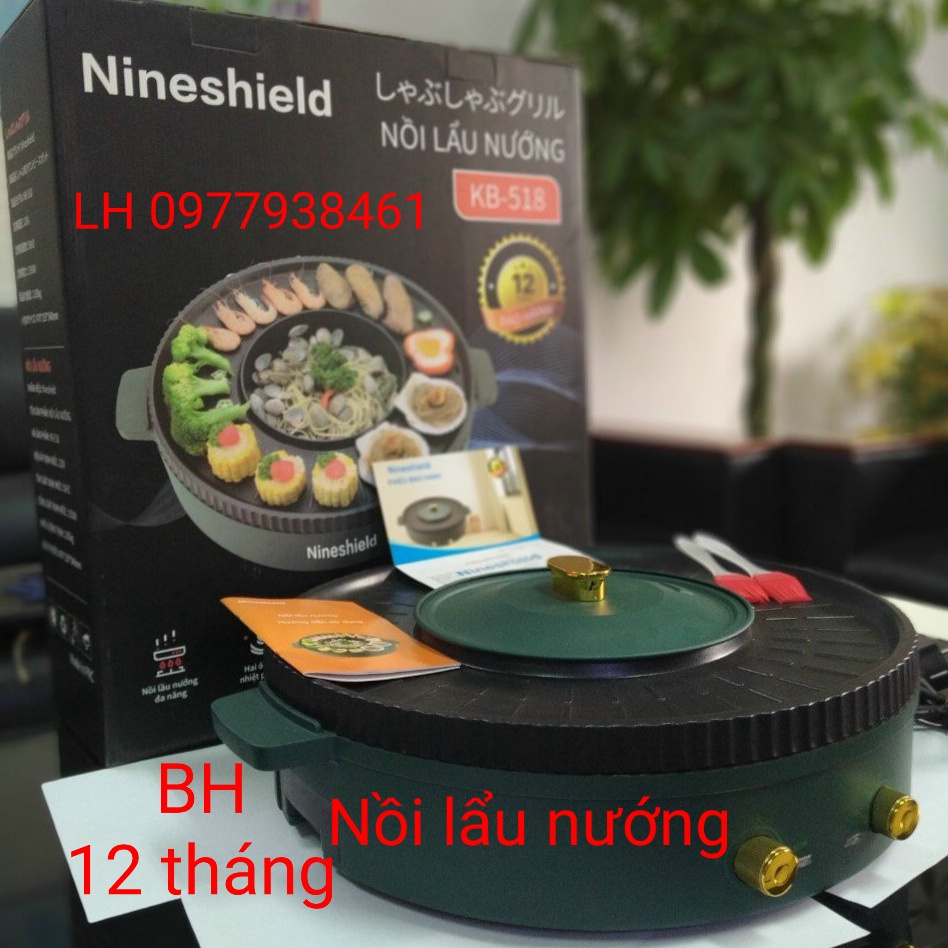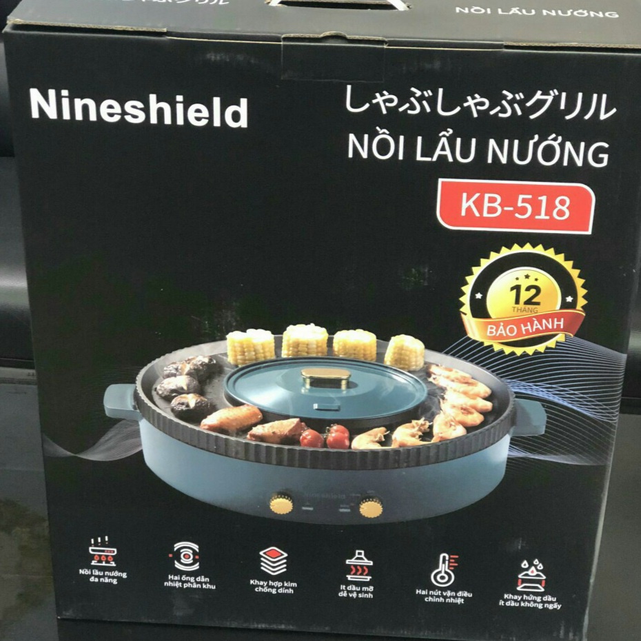 Nồi lẩu nướng đa năng 2 trong 1 NINESHIELD Chính hãng hàng loại 1, Bếp lẩu nướng không khói 2 ngăn đa năng tiện lợi