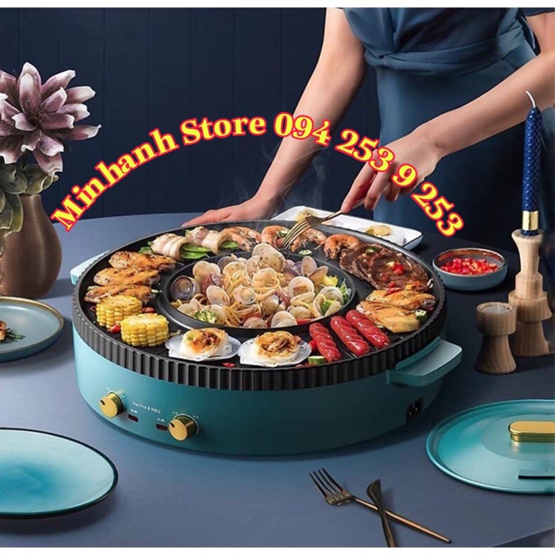 - Thiết kế kiểu mới, nồi ăn lẩu nằm gọn trong khay nướng, giúp thưởng thức cả 2 món ăn cùng lúc