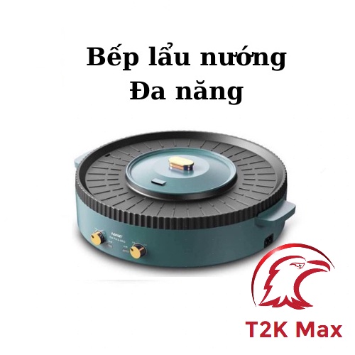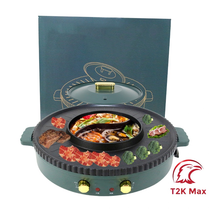 Nồi lẩu nướng đa năng BBQ 2 in 1 có 2 mâm nhiệt, công suất 1350w - bếp lẩu nướng điện đa năng - T2K Max