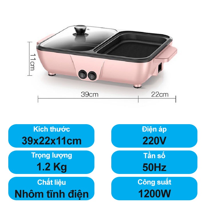 Thông số kỹ thuật sản phẩm Nồi Lẩu Nướng Đa Năng BBQ 2 In 1 Vừa Lẩu Vừa Nướng: