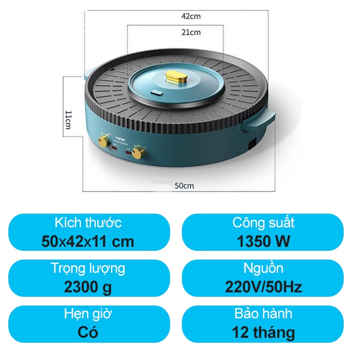 Thông số kỹ thuật sản phẩm Nồi Lẩu Nướng Đa Năng BBQ 2 In 1 Vừa Lẩu Vừa Nướng:
